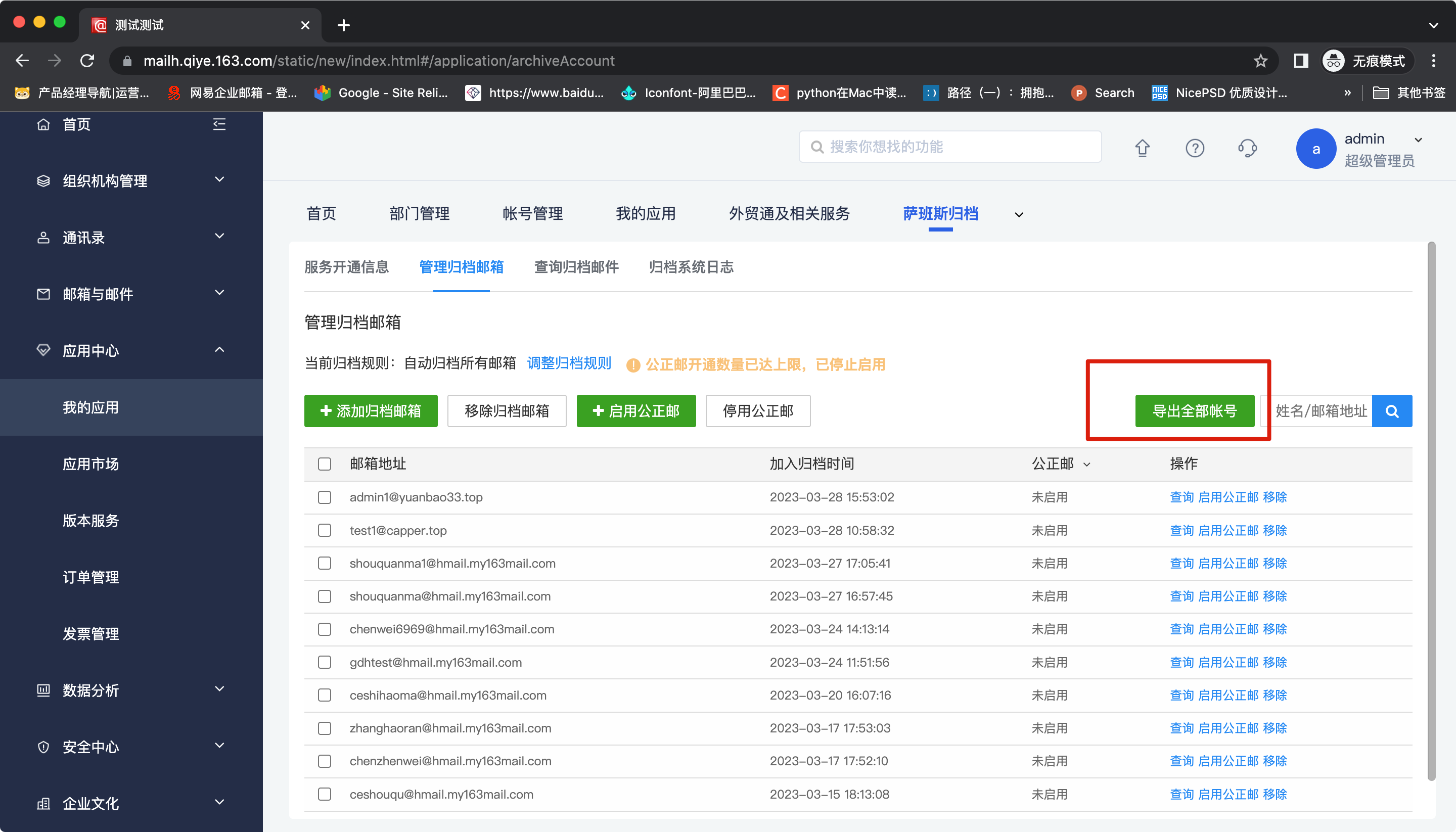 萨班斯归档中,支持一次性导出所有生效的帐号信息